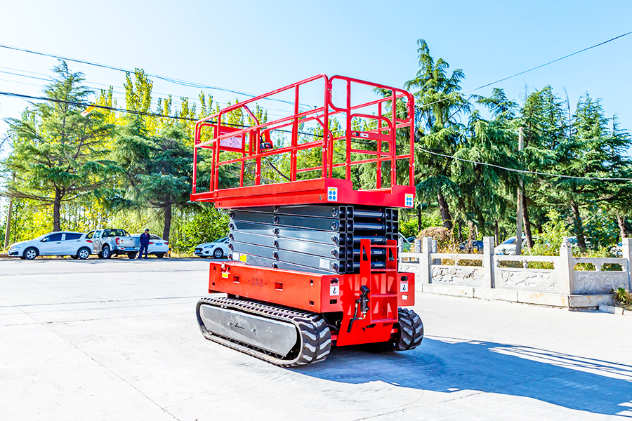 All-Terrain Mobility: Equipped with robust rubber tracks, these tracked scissor lifts can traverse soft ground, slopes, and uneven surfaces effortlessly. This makes them ideal for construction sites, landscaping projects, or any area requiring heavy-duty mobility.