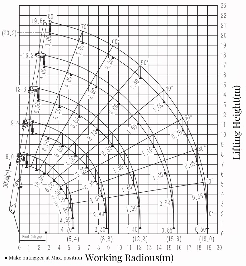 Max working radius:19.8m(0.6ton)