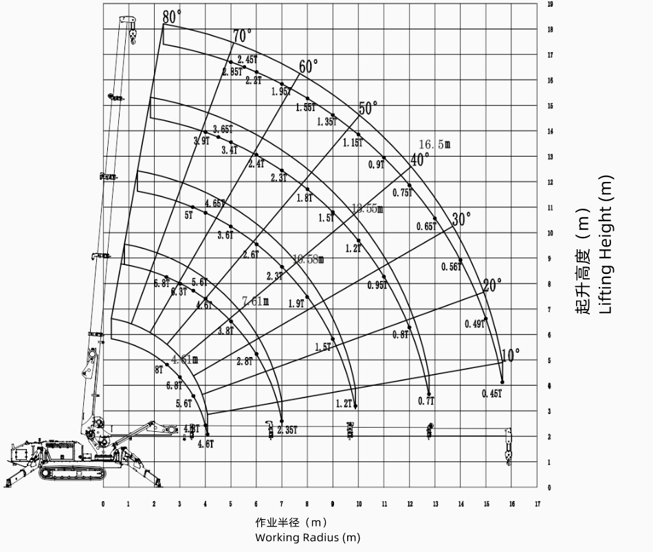 Max working radius:16m(0.5ton)